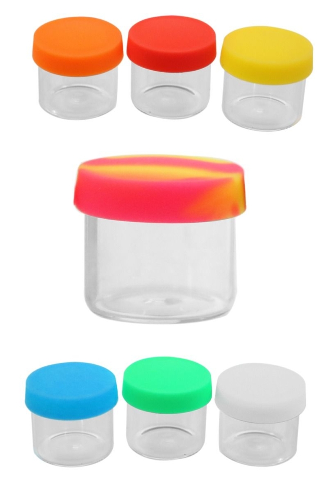 Стъклено бурканче 5мл. с цветна силиконова капачка