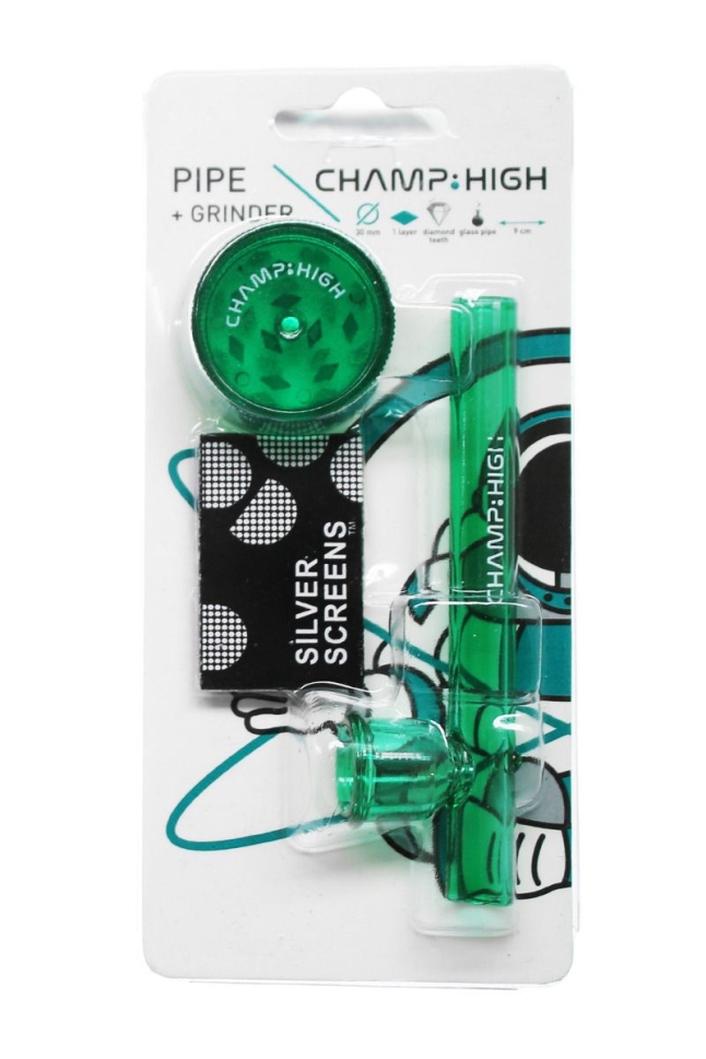 Комплект стъклена лула и грайндер - CHAMP HIGH